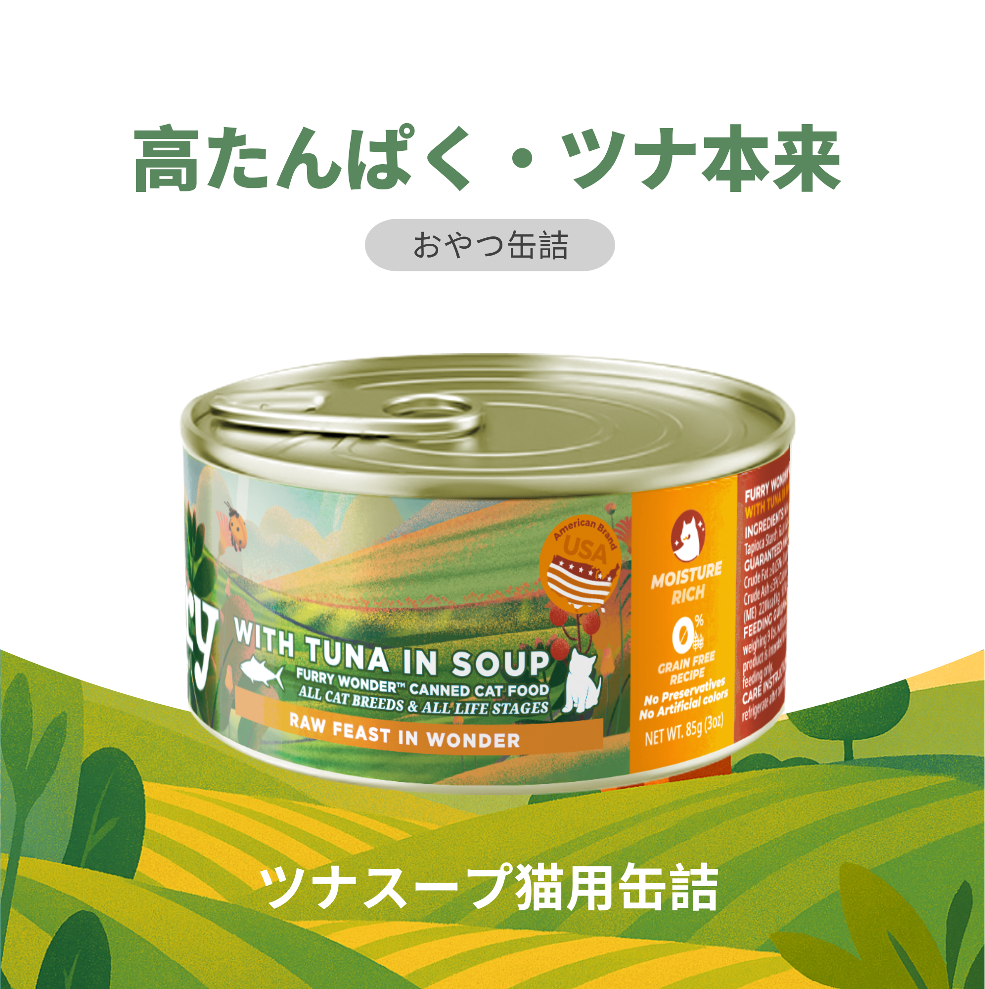 ニュージーランド産ツナを贅沢に使用した、スープ仕立てのプレミアムキャットフード缶。