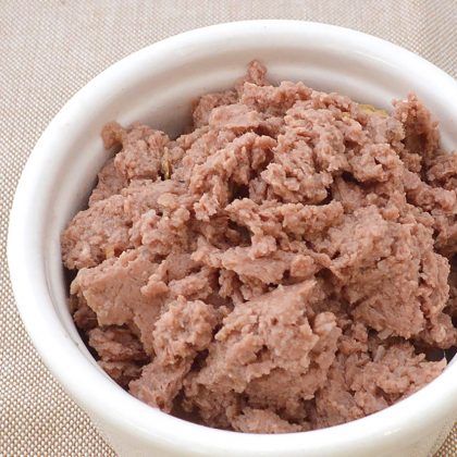 成分値: 粗タンパク質 11%、粗脂肪 7%、粗繊維 0.4%、粗灰分 0.9%、水分 75%